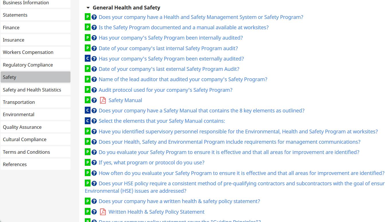 • Complete all questionnaires required on ®ISNetworld*, ®Complyworks, ®CQ Network, ®CQN Advantage, and ®Avetta using the policies, procedures, and practices from your company’s safety manual.