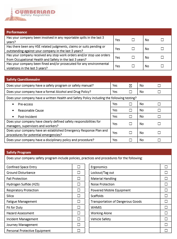• Ensuring questionnaires reflect any company updates from HSE Manual or SWPs.